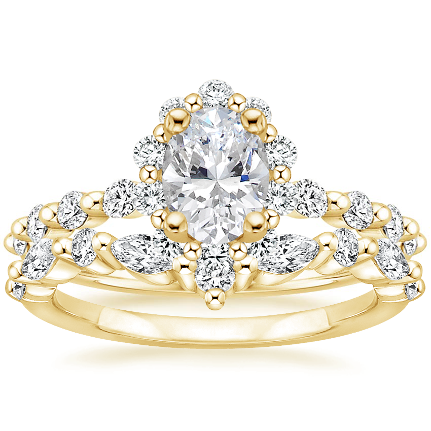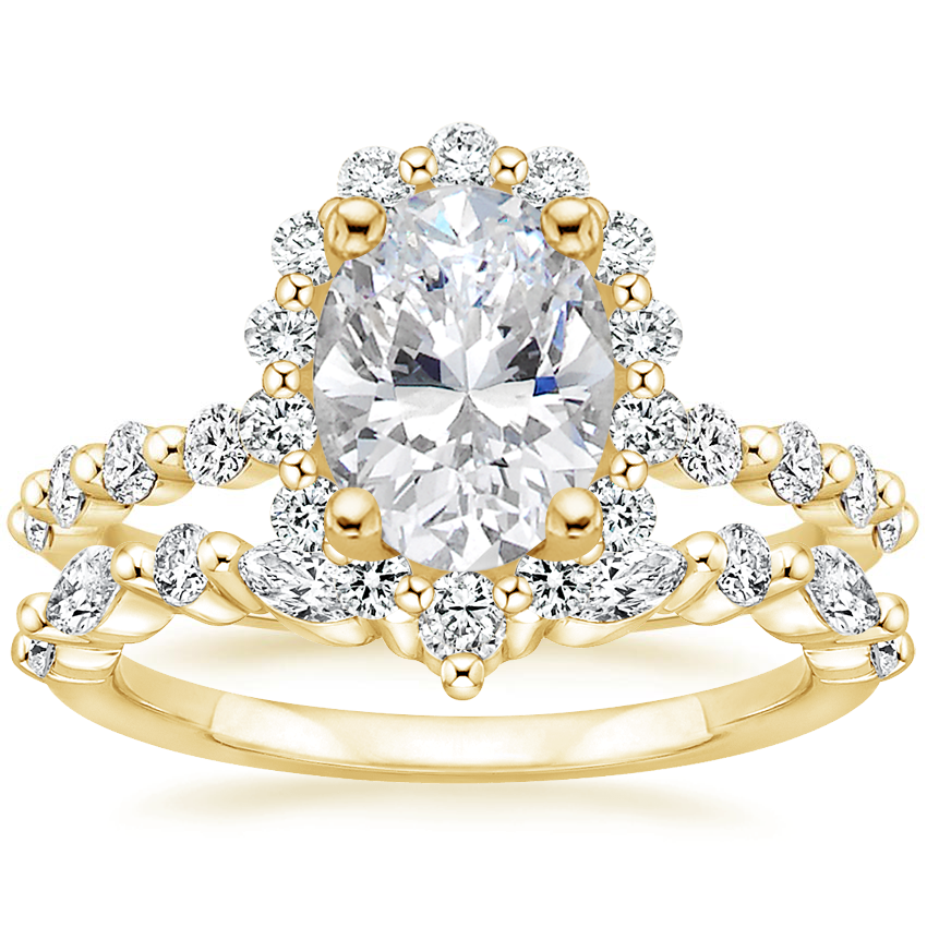 18K Yellow Gold Marseille Halo Diamond Ring (1/2 ct. tw.) with Curved Versailles Diamond Ring