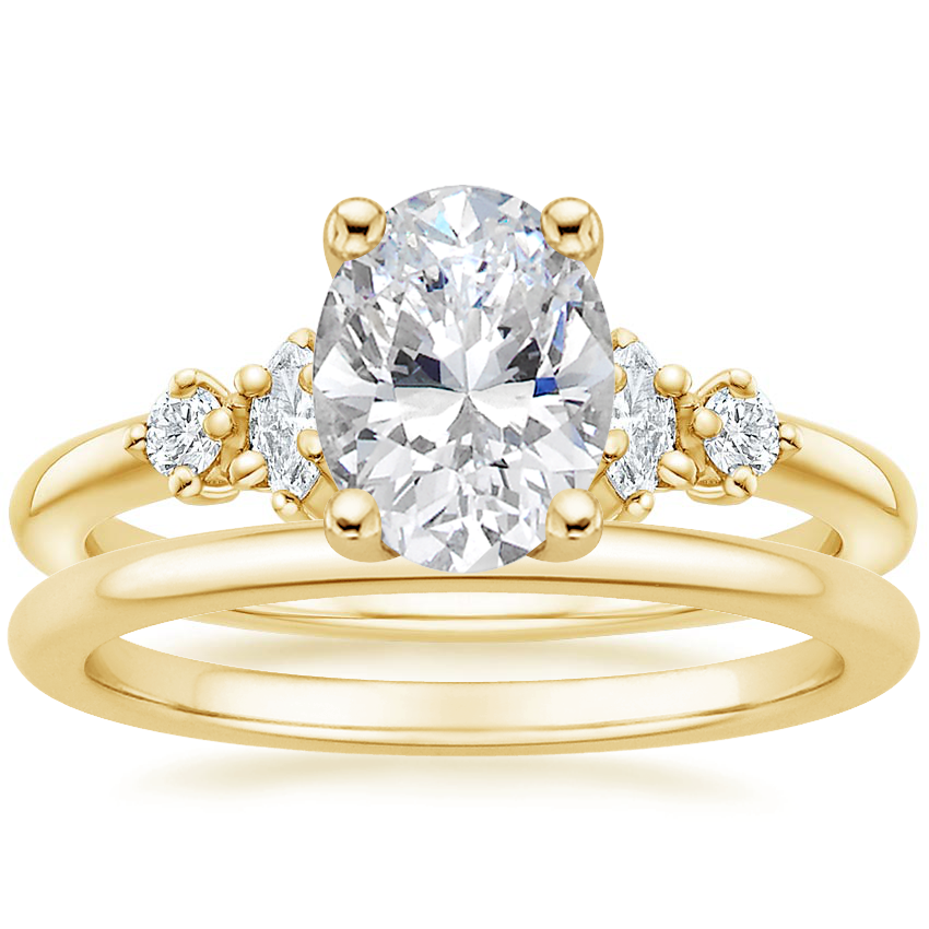 18K Yellow Gold Miroir Diamond Ring with Petite Comfort Fit Wedding Ring