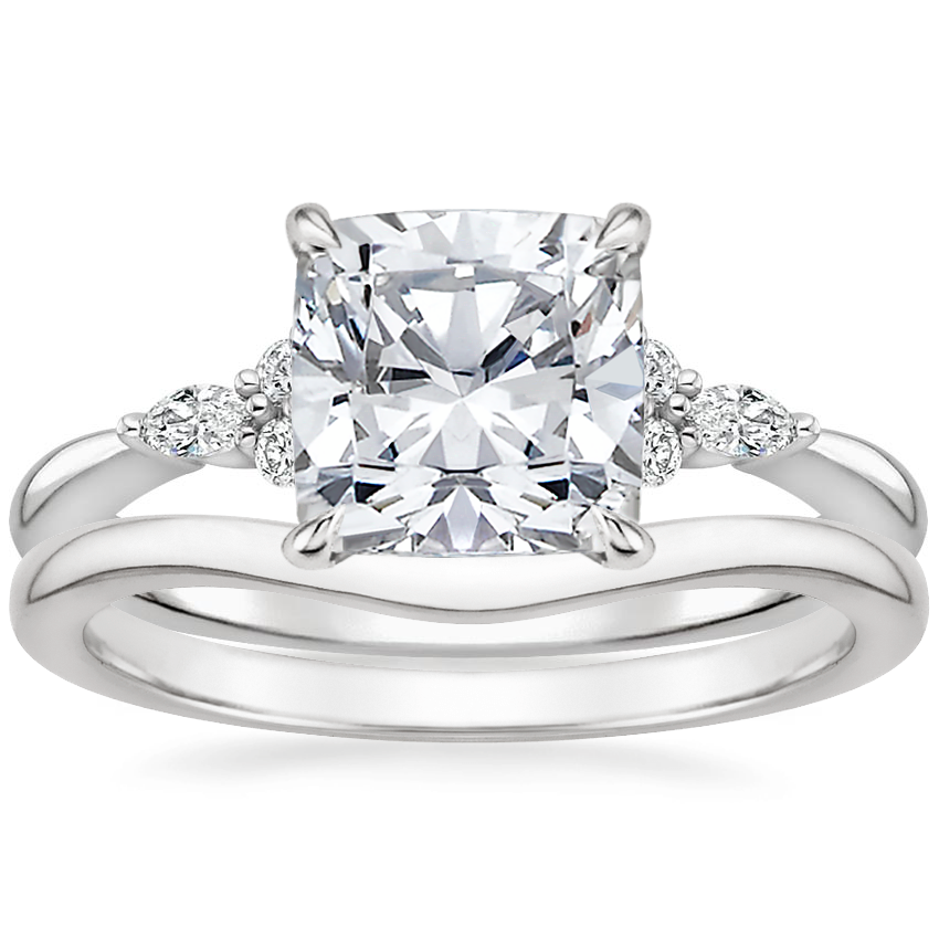 Platinum Nadia Diamond Ring with Petite Curved Wedding Ring