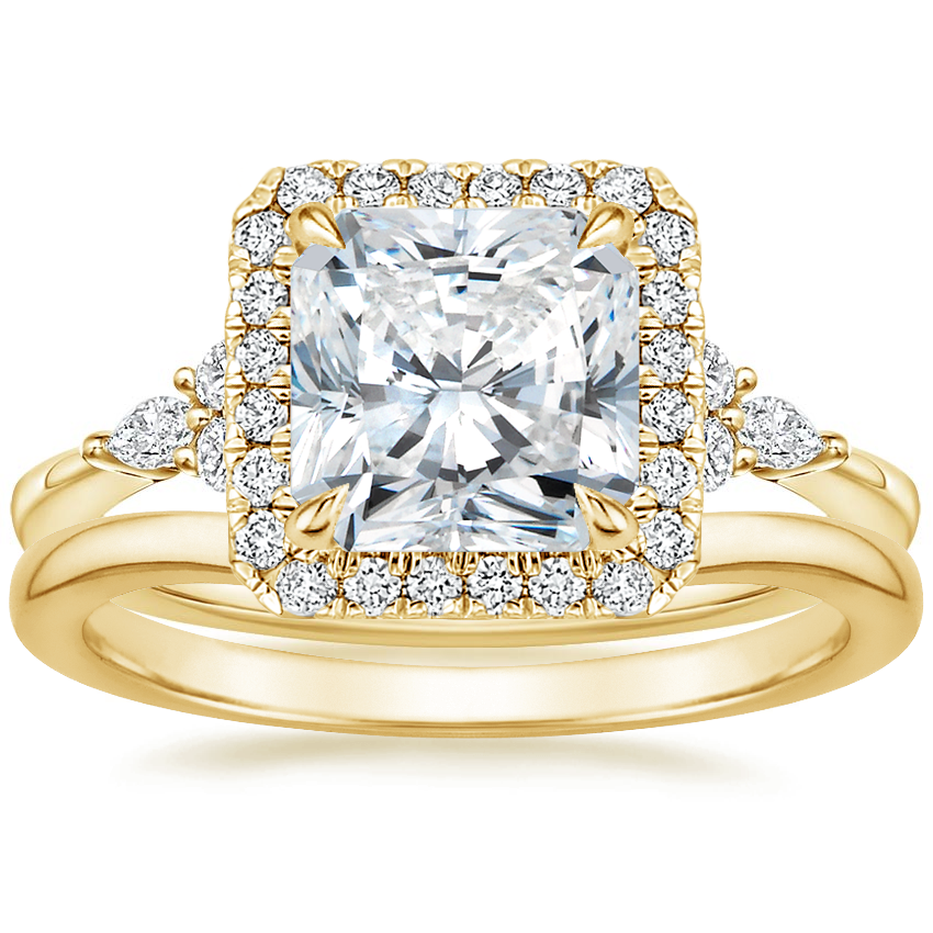 18K Yellow Gold Nadia Halo Diamond Ring with Petite Curved Wedding Ring