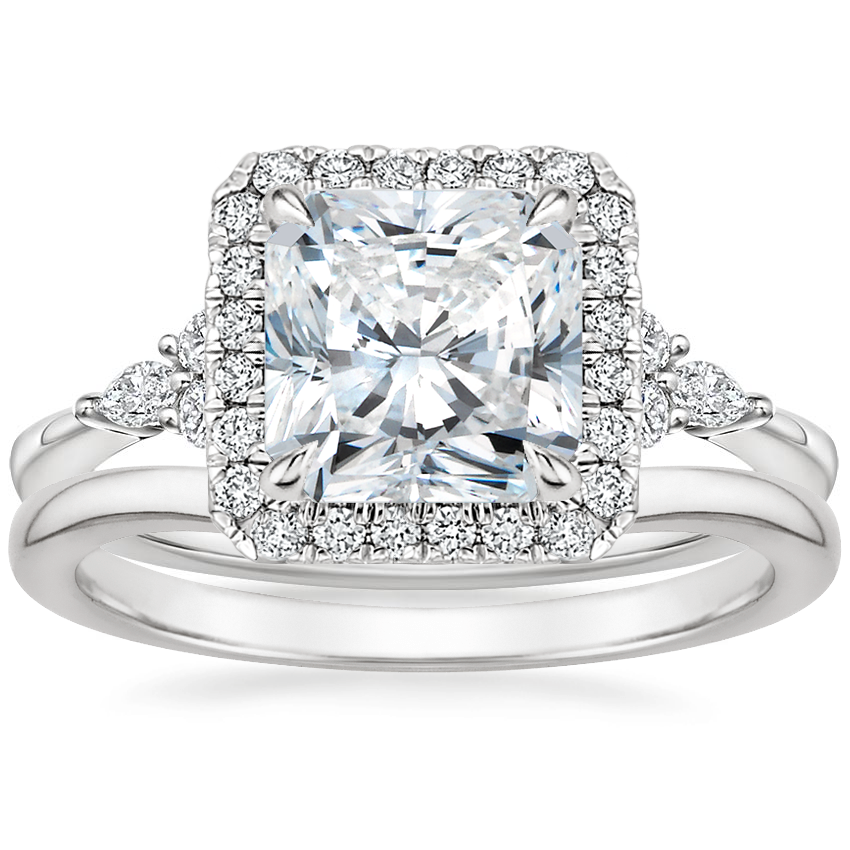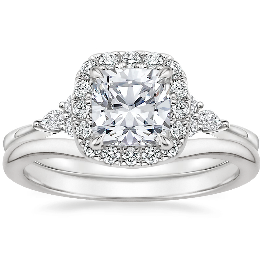 Platinum Nadia Halo Diamond Ring with Petite Curved Wedding Ring