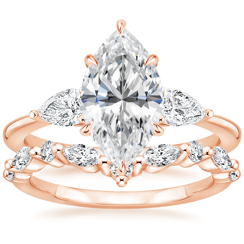 14K Rose Gold Opera Diamond Ring with Curved Versailles Diamond Ring