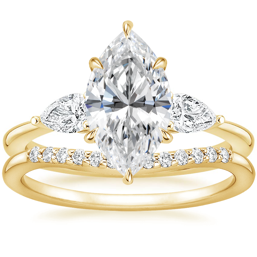 18K Yellow Gold Opera Diamond Ring with Petite Curved Diamond Ring (1/10 ct. tw.)