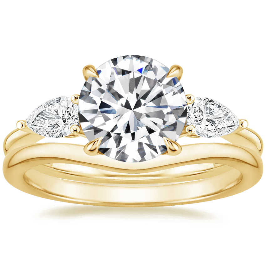 18K Yellow Gold Opera Diamond Ring with Petite Curved Wedding Ring