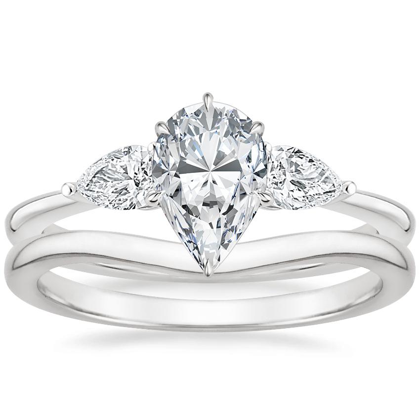 Platinum Opera Diamond Ring with Petite Curved Wedding Ring
