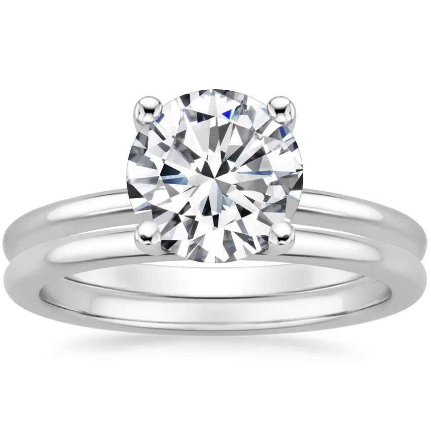 This elegant solitaire bridal set features a raised gallery that allows the wedding band to sit flush for a perfect fit. The petite bands add to the sleek, classic look of this ring. ... Read More