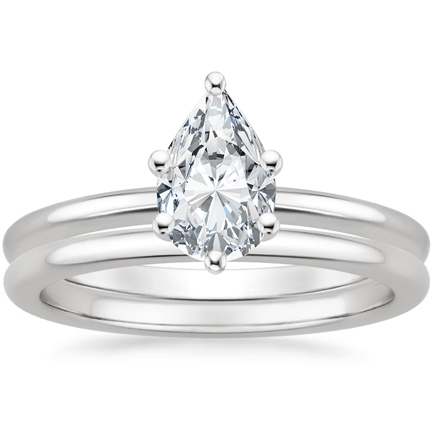 This elegant solitaire bridal set features a raised gallery that allows the wedding band to sit flush for a perfect fit. The petite bands add to the sleek, classic look of this ring. ... Read More