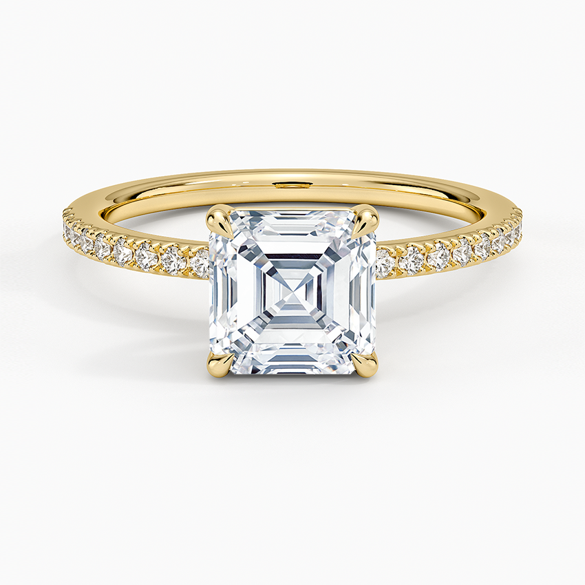 18K Yellow Gold Perfect Fit Half Coverage Lab Diamond Ring with 1.5 Carat Asscher Lab Grown Diamond