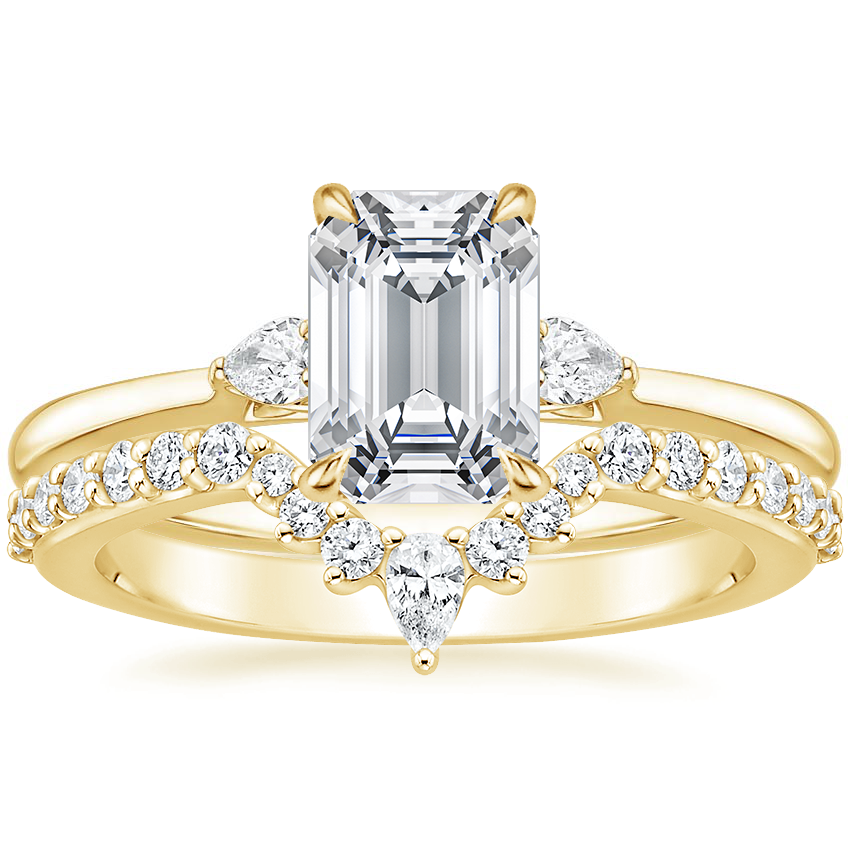 18K Yellow Gold Perfect Fit Three Stone Pear Diamond Ring with Luxe Lunette Diamond Ring (1/3 ct. tw.)