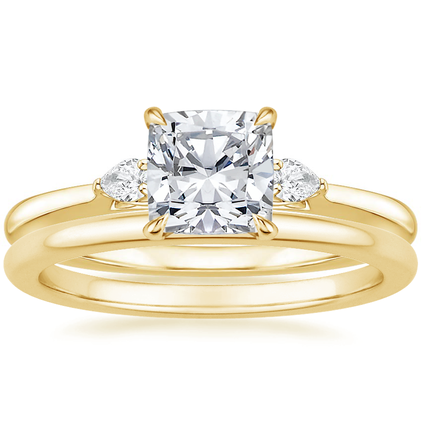 18K Yellow Gold Perfect Fit Three Stone Pear Diamond Ring with Petite Comfort Fit Wedding Ring