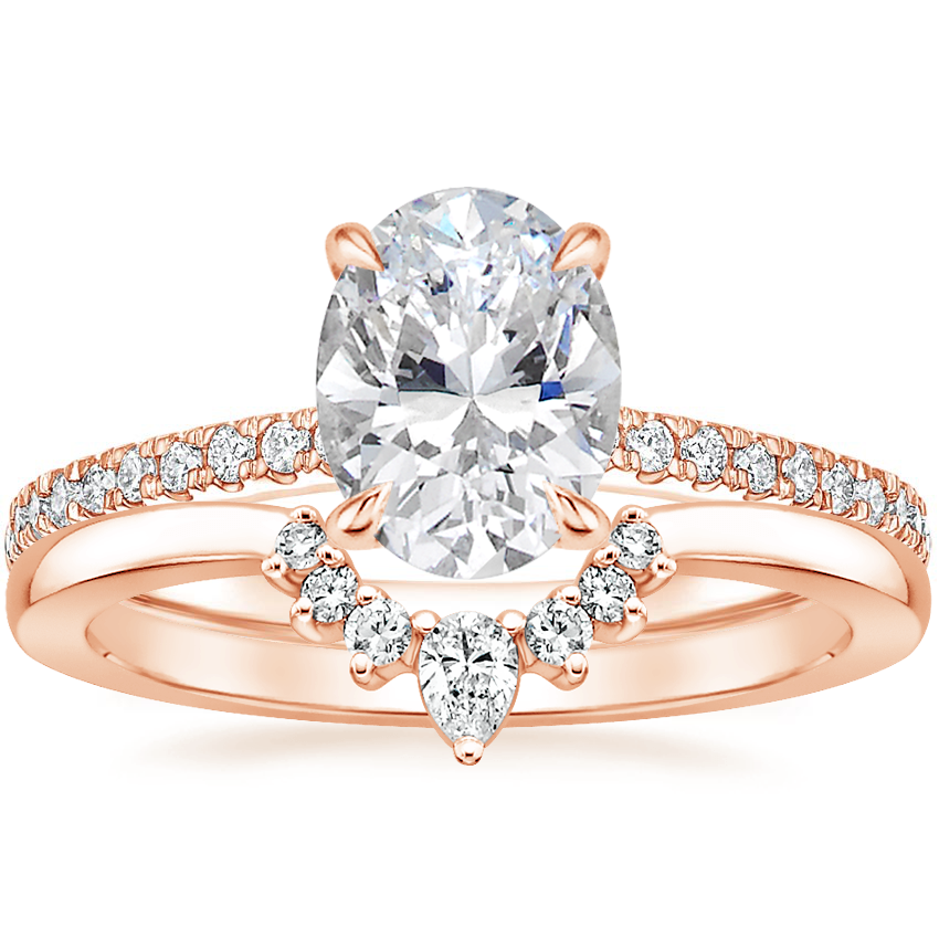 14K Rose Gold Petite Demi Diamond Ring (1/5 ct. tw.) with Lunette Diamond Ring