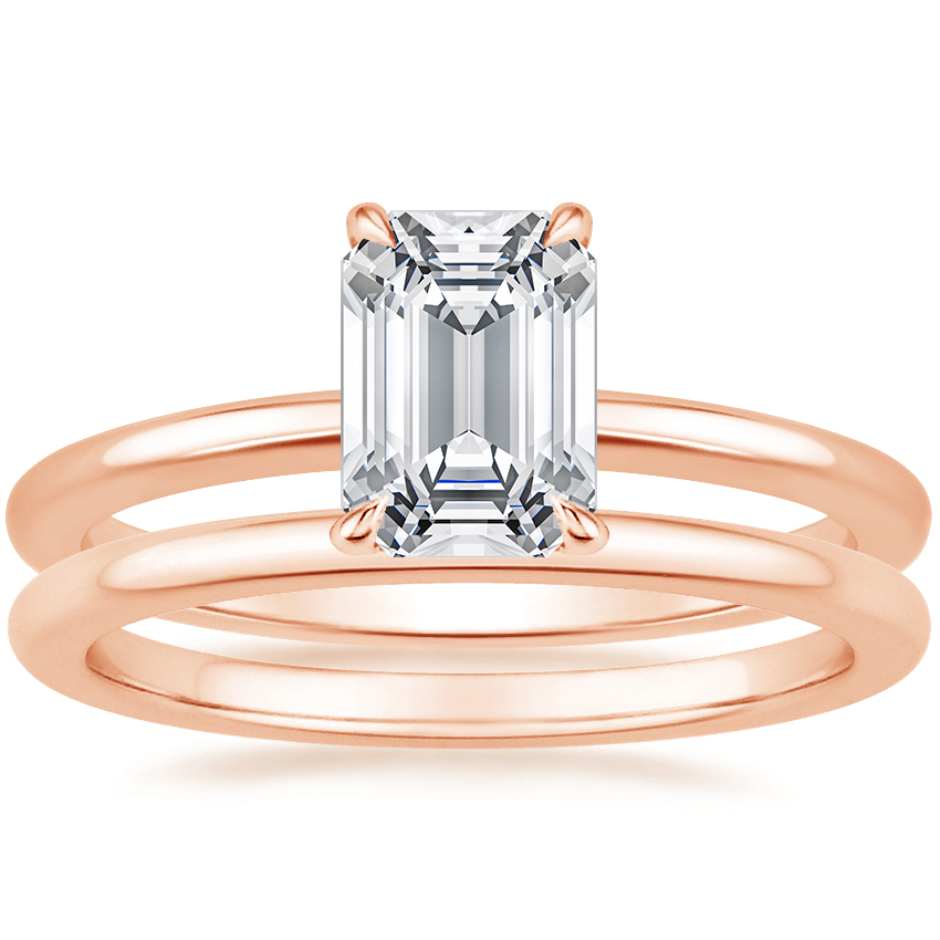 14K Rose Gold Petite Elodie Ring with Petite Comfort Fit Wedding Ring