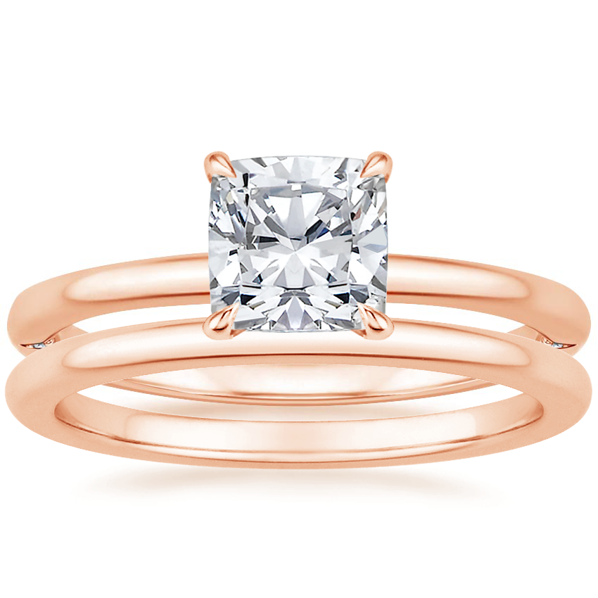 14K Rose Gold Petite Heritage Diamond Ring with Petite Comfort Fit Wedding Ring
