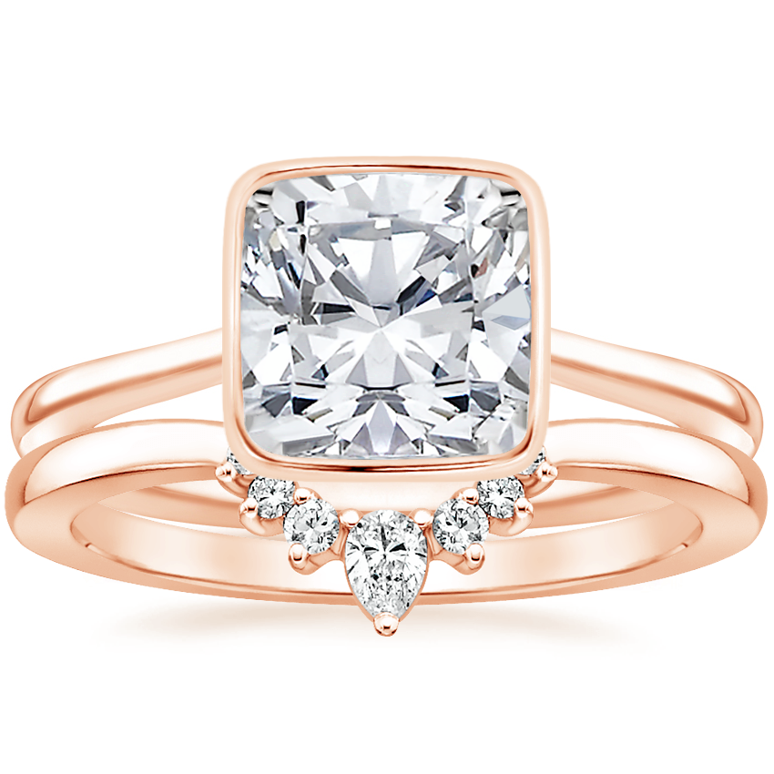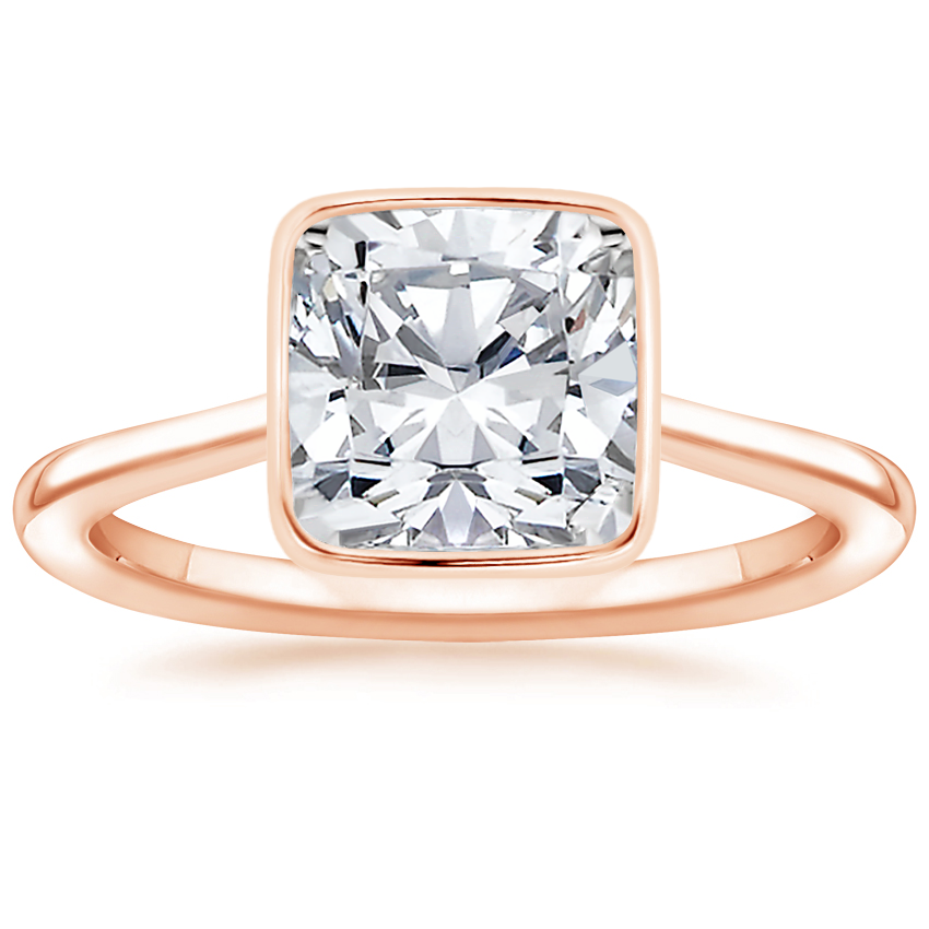 14K Rose Gold Petite Luna Bezel Ring with Lunette Diamond Ring