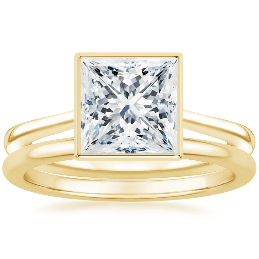18K Yellow Gold Petite Luna Bezel Ring with Petite Comfort Fit Wedding Ring