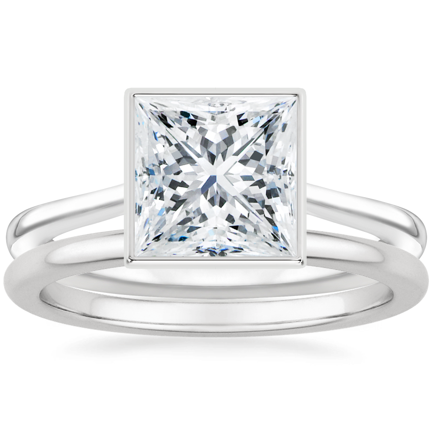 Platinum Petite Luna Bezel Ring with Petite Comfort Fit Wedding Ring