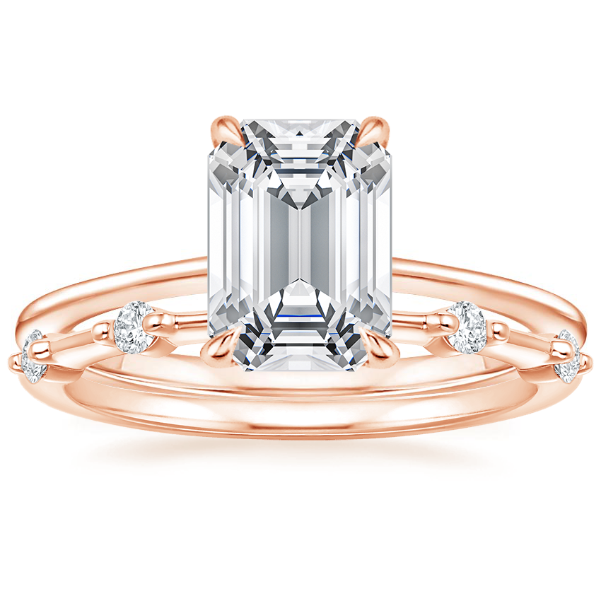 14K Rose Gold Petite Secret Halo Diamond Ring with Aimee Diamond Ring