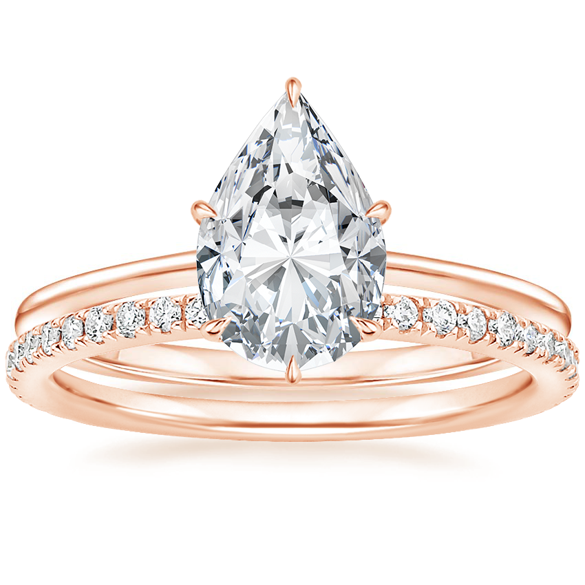 14K Rose Gold Petite Secret Halo Diamond Ring with Luxe Ballad Diamond Ring (1/4 ct. tw.)