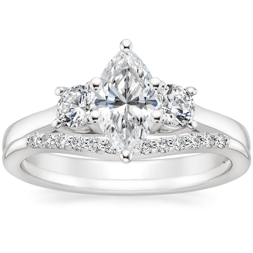 Platinum Petite Three Stone Trellis Diamond Ring (1/3 ct. tw.) with Petite Curved Diamond Ring (1/10 ct. tw.)