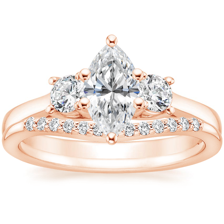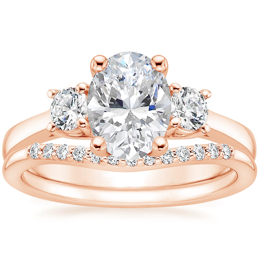 14K Rose Gold Petite Three Stone Trellis Diamond Ring (1/3 ct. tw.) with Petite Curved Diamond Ring (1/10 ct. tw.)