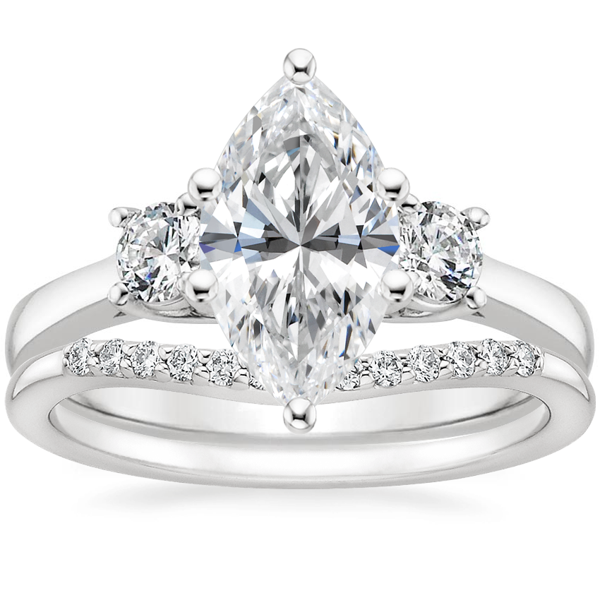 Petite Three Stone Trellis Diamond Ring (1/3 ct. tw.) with Petite Curved Diamond Ring (1/10 ct. tw.) in 18K White Gold