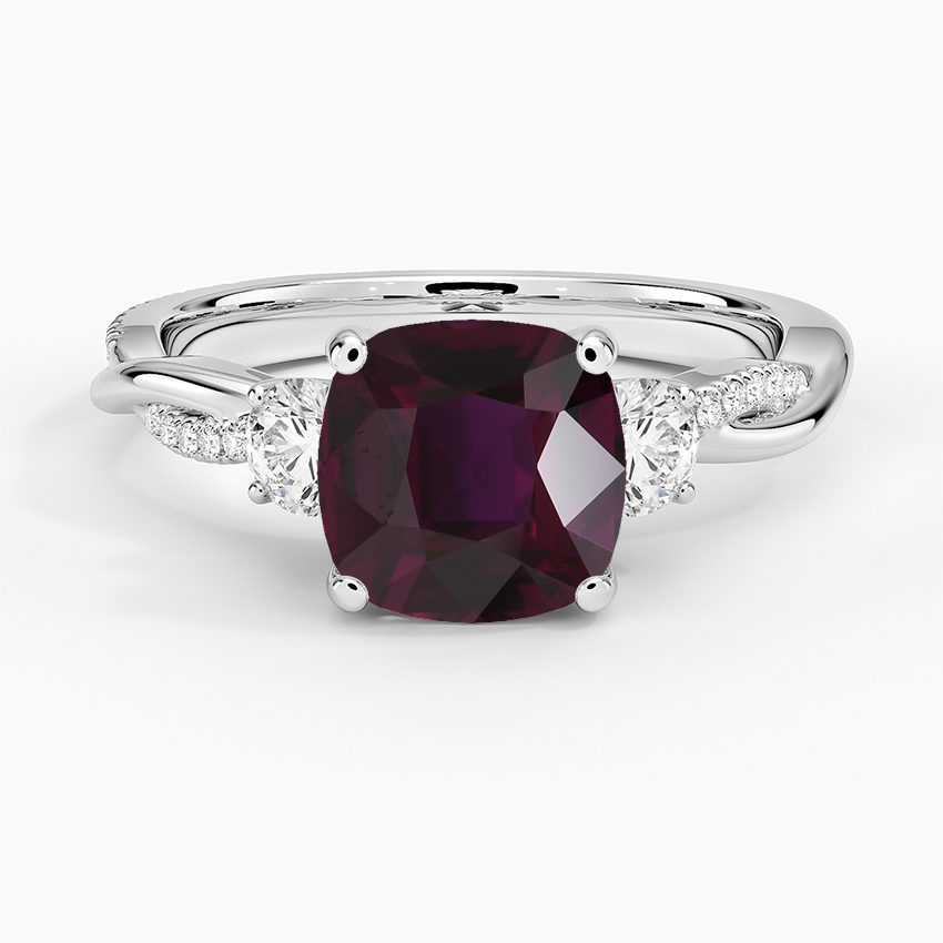 18K White Gold Petite Twisted Vine Three Stone Diamond Ring (2/5 ct. tw.) with 8.2x7.9mm Premium Purple Cushion Sapphire