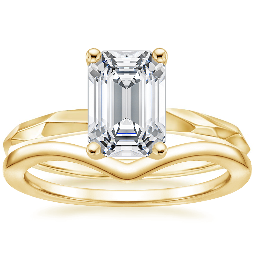 18K Yellow Gold Piedra Ring with Chevron Ring