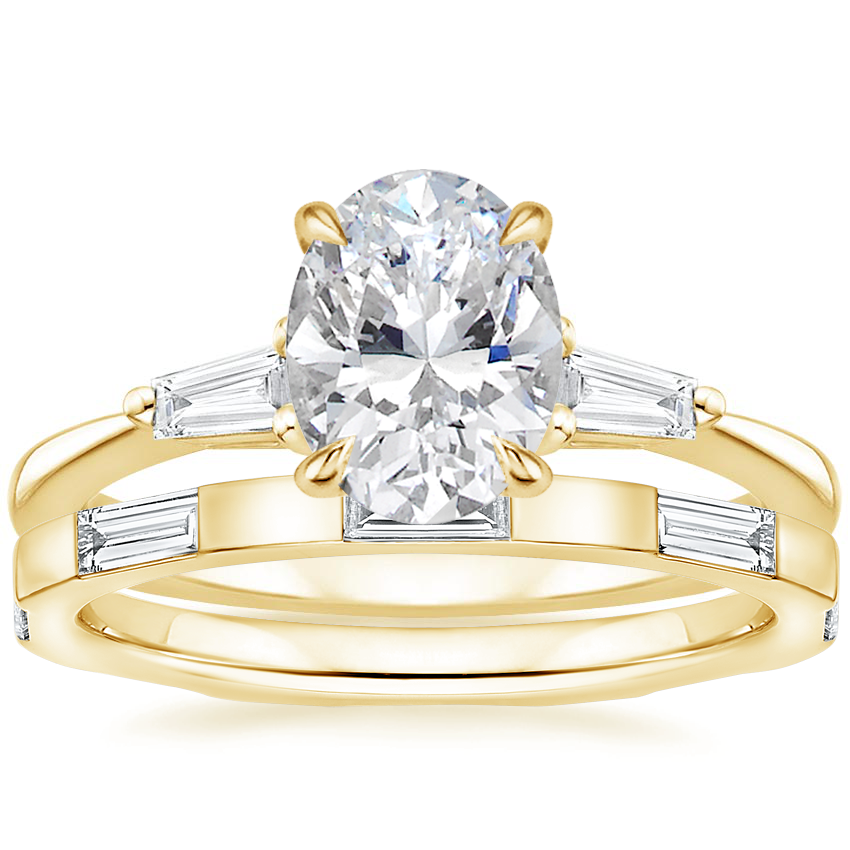 It's a show stopper that everyone comments on. The tapered baguets are a perfect compliment to the oval diamond without being cliché
