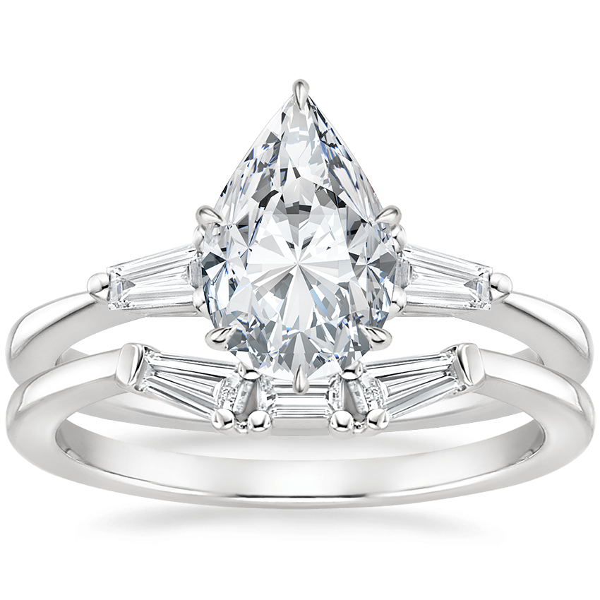 18K White Gold Quinn Diamond Ring with Tapered Baguette Diamond Ring