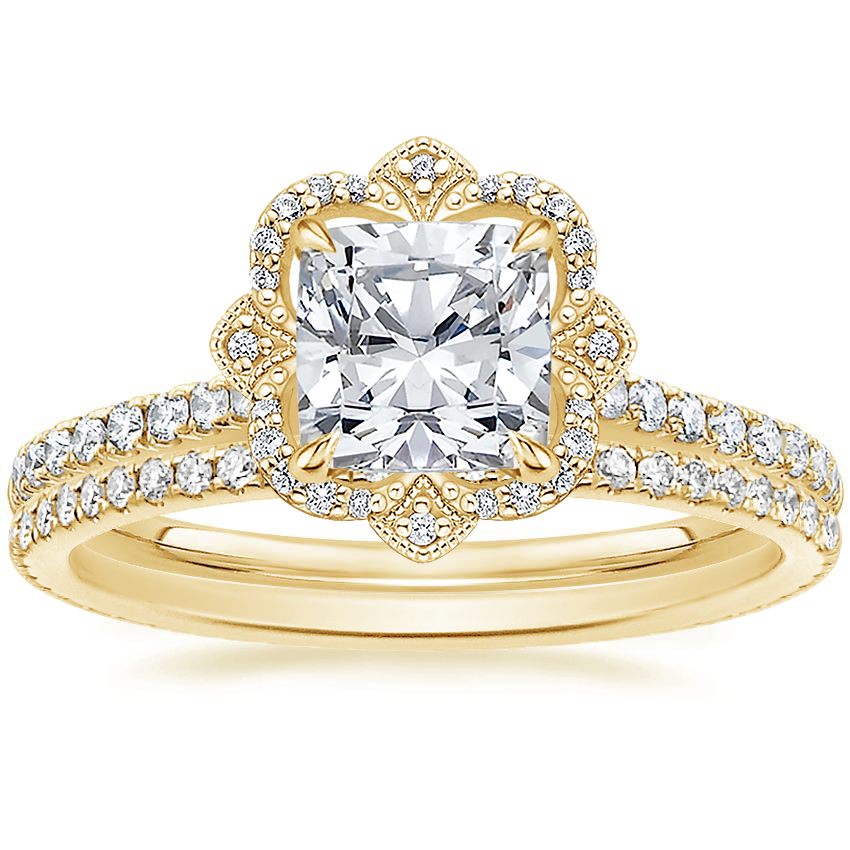 18K Yellow Gold Reina Diamond Ring (1/4 ct. tw.) with Whisper Eternity Diamond Ring (1/4 ct. tw.)