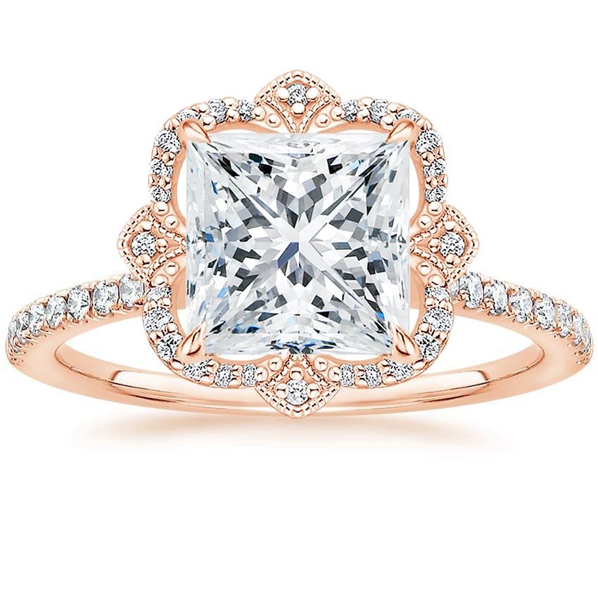 I knew I wanted a rose gold ring in a vintage-inspired setting, and the Reina Halo is absolute perfection! I purchased my ring entirely online (not from a showroom) and I got mine set with a 7mm cushion-cut premium moissanite. While thin and dainty, the pavé band is definitely more durable than I thought it would be. It is so comfortable to wear, and while the gem sits a little higher than I would prefer, I'm sure this is to comfortably accommodate my future wedding band. Overall I had a fantastic experience with customer service, ordering online, and receiving my purchase. I highly recommend Brilliant Earth, their rose gold options, their moissanite gemstones, and the Reina Halo setting!
