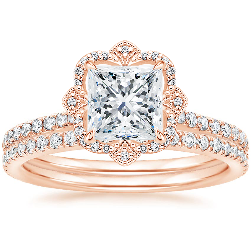 14K Rose Gold Reina Diamond Ring with Luxe Ballad Diamond Ring (1/4 ct. tw.) with 1.01 Carat Princess Diamond