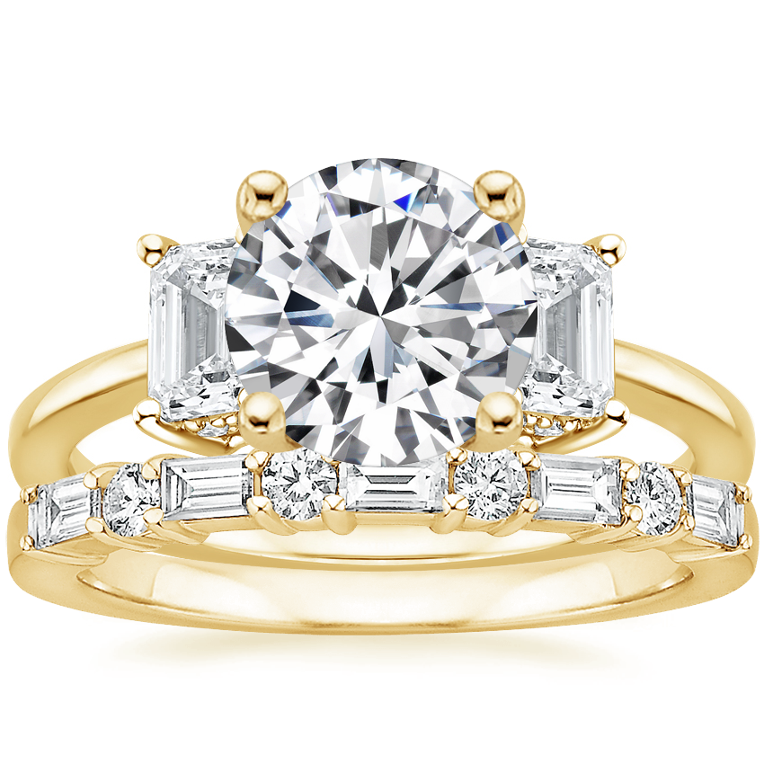 18K Yellow Gold Rhiannon Diamond Ring with Hidden Accents with Leona Diamond Ring (1/3 ct. tw.)