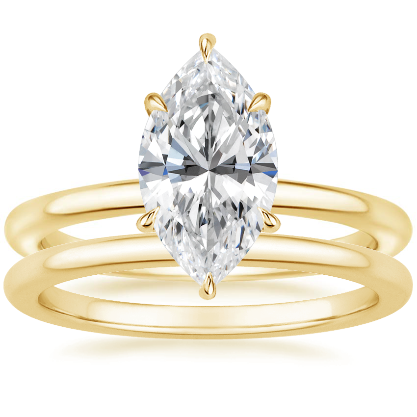 Salma Diamond Ring with Petite Comfort Fit Wedding Ring in 18K Yellow Gold