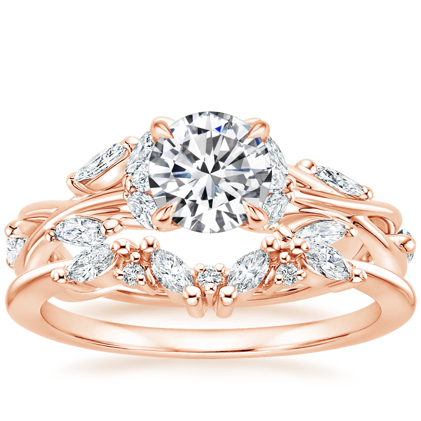 14K Rose Gold Secret Garden Diamond Ring (1/2 ct. tw.) with Yvette Diamond Ring with 0.75 Carat Round Diamond