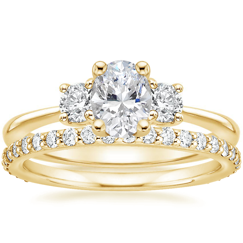 18K Yellow Gold Serena Diamond Ring (1/3 ct. tw.) with Petite Shared Prong Eternity Diamond Ring (1/2 ct. tw.)