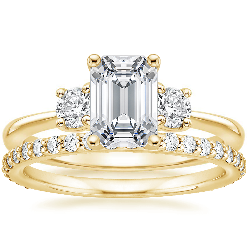 18K Yellow Gold Serena Diamond Ring (1/3 ct. tw.) with Petite Shared Prong Eternity Diamond Ring (1/2 ct. tw.)