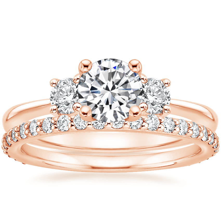 14K Rose Gold Serena Diamond Ring (1/3 ct. tw.) with Petite Shared Prong Eternity Diamond Ring (1/2 ct. tw.)