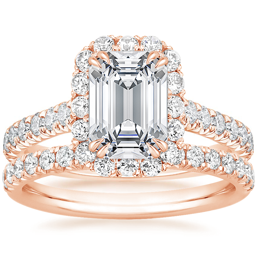 14K Rose Gold Sienna Halo Diamond Ring with Amelie Diamond Ring (1/3 ct. tw.)