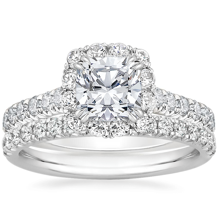 18K White Gold Sienna Halo Diamond Ring with Amelie Diamond Ring (1/3 ct. tw.)