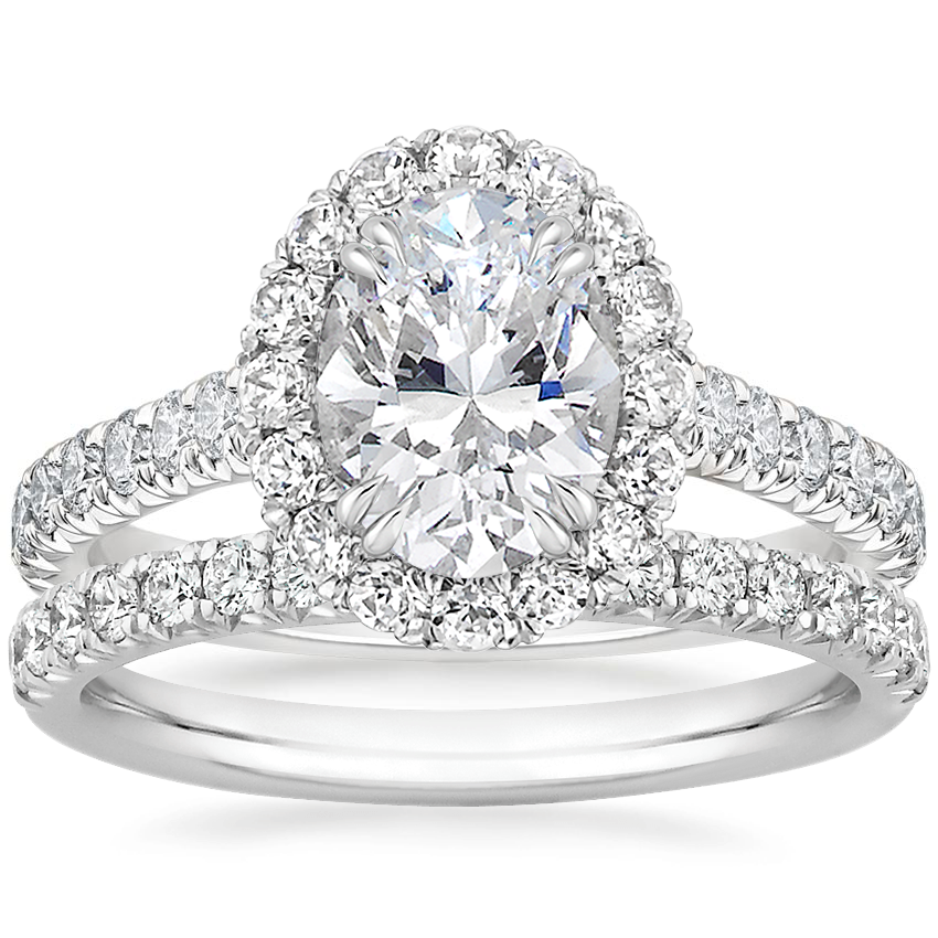 18K White Gold Sienna Halo Diamond Ring with Amelie Diamond Ring (1/3 ct. tw.)