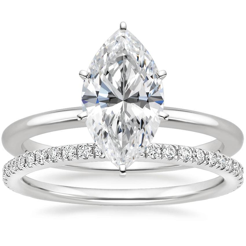 18K White Gold Six-Prong Petite Comfort Fit Ring with Luxe Ballad Diamond Ring (1/4 ct. tw.)