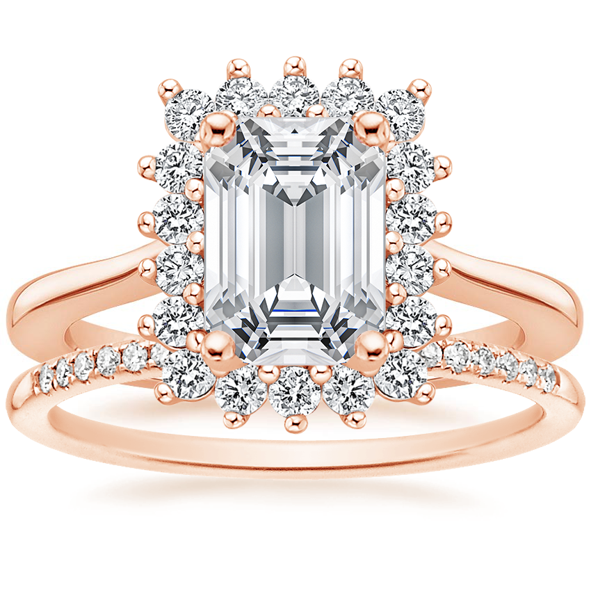 14K Rose Gold Sunburst Diamond Ring (1/4 ct. tw.) with Whisper Diamond Ring (1/10 ct. tw.)