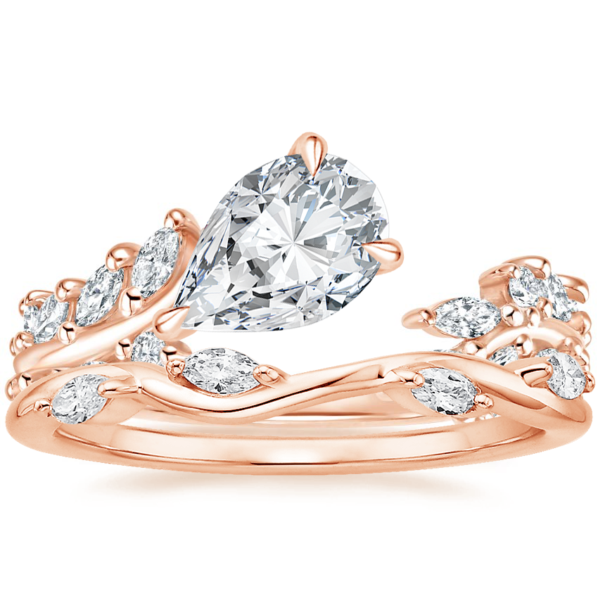 14K Rose Gold Sweeping Ivy Diamond Ring (1/2 ct. tw.) with Winding Willow Diamond Ring