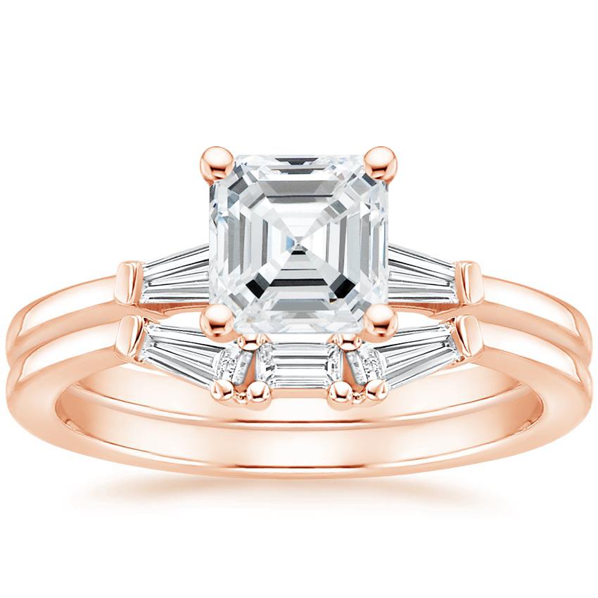 14K Rose Gold Tapered Baguette Diamond Bridal Set