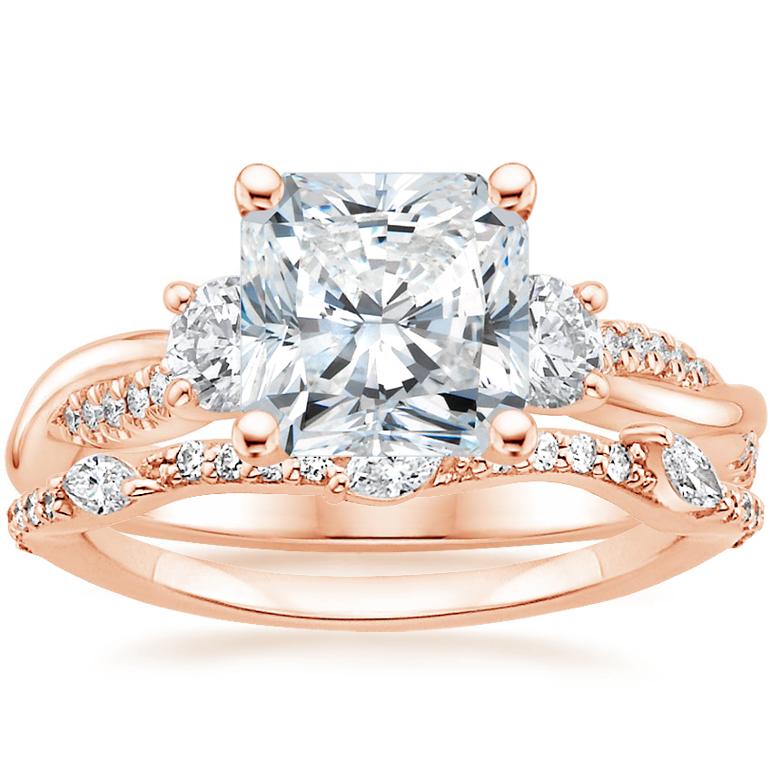 14K Rose Gold Three Stone Petite Twisted Vine Diamond Ring (2/5 ct. tw.) with Luxe Willow Contoured Diamond Ring (1/5 ct. tw.)