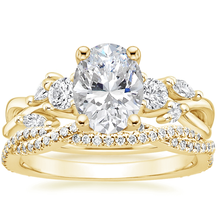 Three Stone Willow Diamond Ring (1/3 ct. tw.) with Petite Luxe Twisted Vine Diamond Ring (1/4 ct. tw.) in 18K Yellow Gold