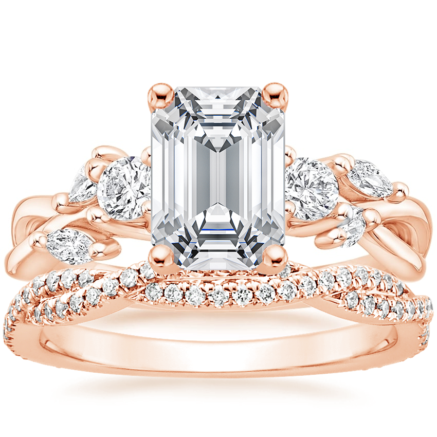 14K Rose Gold Three Stone Willow Diamond Ring (1/3 ct. tw.) with Petite Luxe Twisted Vine Diamond Ring (1/4 ct. tw.)