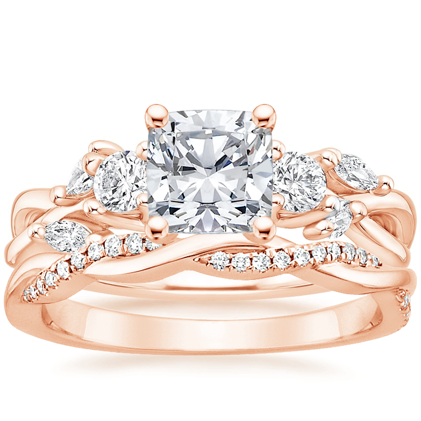 14K Rose Gold Three Stone Willow Diamond Ring (1/3 ct. tw.) with Petite Twisted Vine Diamond Ring (1/8 ct. tw.)
