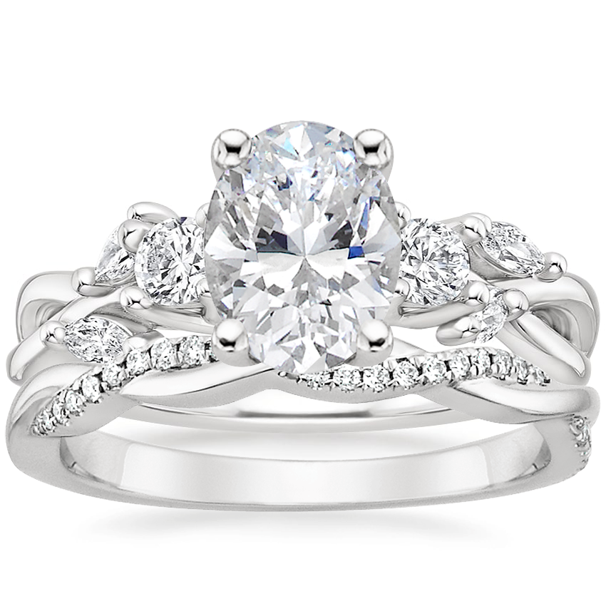 18K White Gold Three Stone Willow Diamond Ring (1/3 ct. tw.) with Petite Twisted Vine Diamond Ring (1/8 ct. tw.)